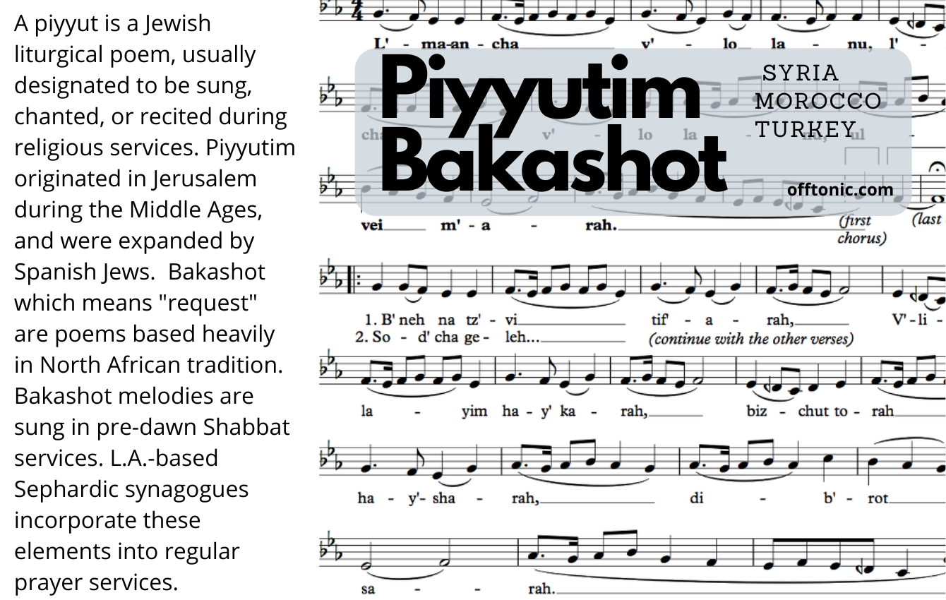 Sephardic and Mizrahi communities boast rich musical traditions that date back centuries. Borrowing from, intertwining with, and influencing local Arab, Turkish, Balkan, and Spanish musical trends, Sephardic and Mizrahi music features devotional poetry, upbeat tunes and melodies, a mix of western and Middle Eastern instruments, and a range of powerful vocals. Sephardic music often features Ladino, or Judeo-Spanish (a mix of Spanish and Hebrew), and elements of both musical traditions can be found in the synagogues, streets, and venues of Los Angeles.